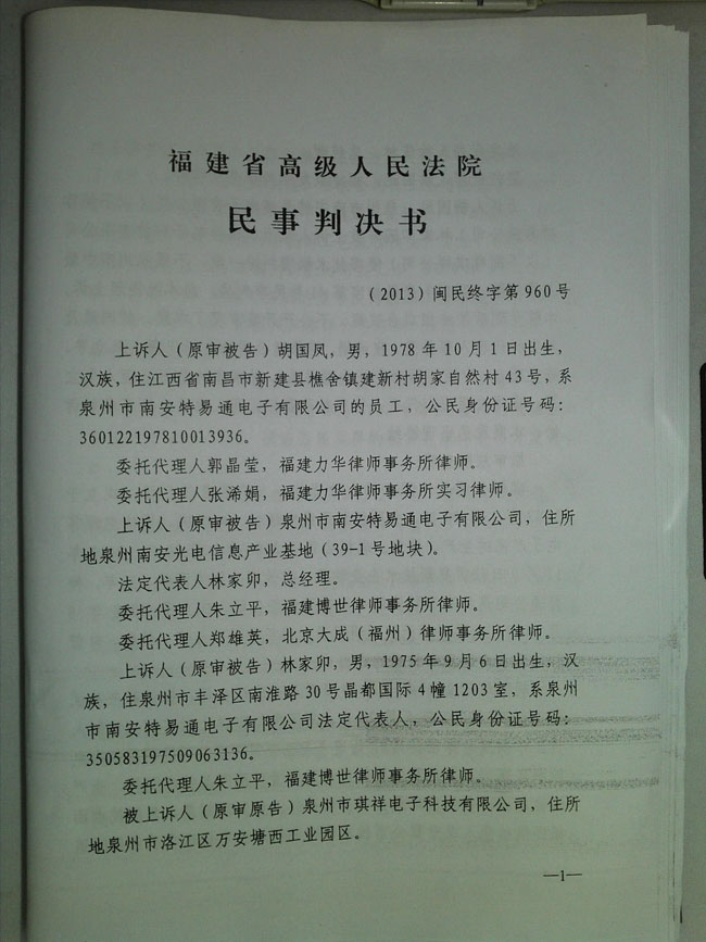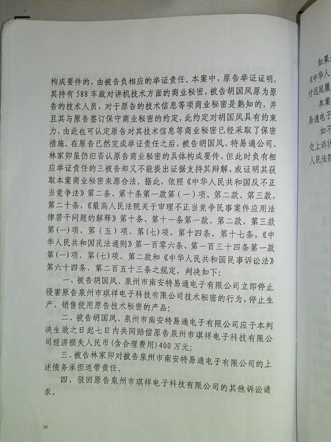 8318Stolen Intellectual Property-Court Judgment in Favor of Qixiang